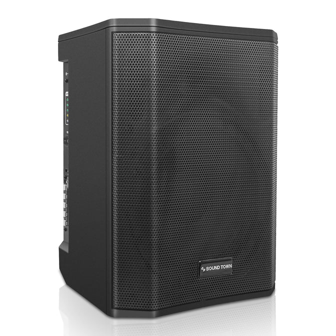 The Sound Town CARPO-S1 is a portable all-in-one PA speaker that you can carry around from gig to gig. With a customized 8″ LF and 1″ titanium compression driver, it delivers rich bass and crisp highs. Whether right in front of the enclosure, or on the sides, the speaker delivers great and even coverage in the whole listening area. The speaker also comes with a 35mm mount socket and can be tilted back, seated or stand mounted (compatible with the Sound Town STSD-48B, STSD-71B speaker stands, sold separately), it serves as a PA speaker and also a wedge monitor. It’s great for a house party, coffee house performance, event speech and etc.