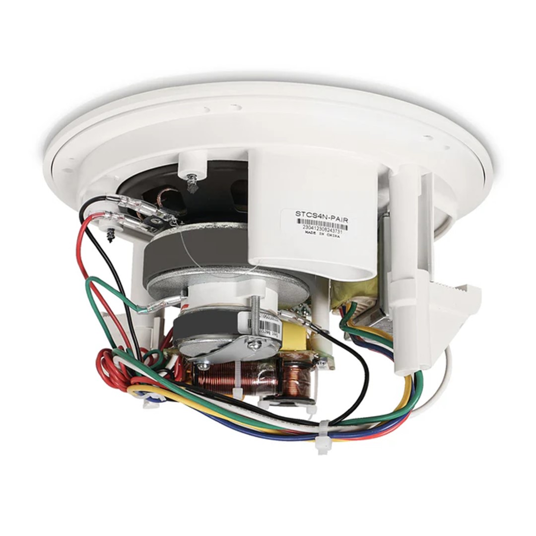 Installation is straightforward and allows for secure flush-mounting in residential and commercial settings. The speakers come with a sleek white-painted magnetic grill that blends seamlessly into different environments. With a dispersion angle of 140°, the STCS4N-PAIR ensures immersive sound coverage. Every audience member enjoys clear and consistent audio. This feature makes them an excellent choice for diverse applications, including restaurants, cafes, bars, lobbies, conference rooms, auditoriums, retail stores, and casinos.