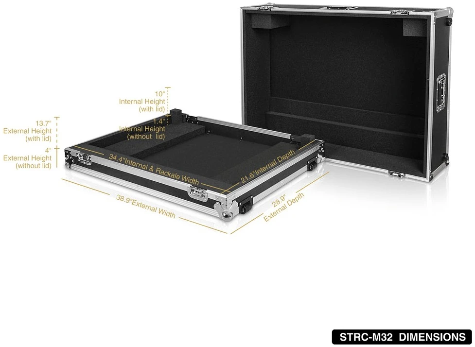 The Sound Town STRC-M32 Flight Case For M32 ensures exceptional protection, durability, and mobility. Its rugged build, shock-absorbing foam, and secure design make it the perfect choice for transporting or storing your Midas M32 mixer.