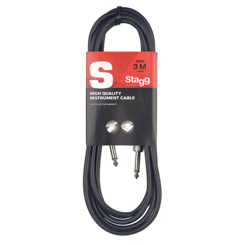 The Stagg SGC3 is a durable and dependable instrument cable designed for musicians who need a reliable connection between their instruments and amplifiers or effects units. With 6.35 mm (¼”) jack connectors on both ends, it delivers a clear, noise-free signal transfer, making it ideal for guitars, basses, keyboards, and other electronic instruments. Its 3-metre length offers flexibility on stage, in the studio, or at home.