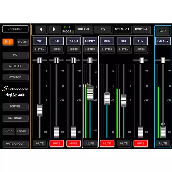 The surprisingly comprehensive DSP section takes care of the behind the scenes processing including Parametric EQ, Graphic EQ, Compressor/Gate, Digital Effects for Reverb and Delay plus many more useful features to take the effort from the mixing and leave the artist to concentrate, without distraction, on their performance.