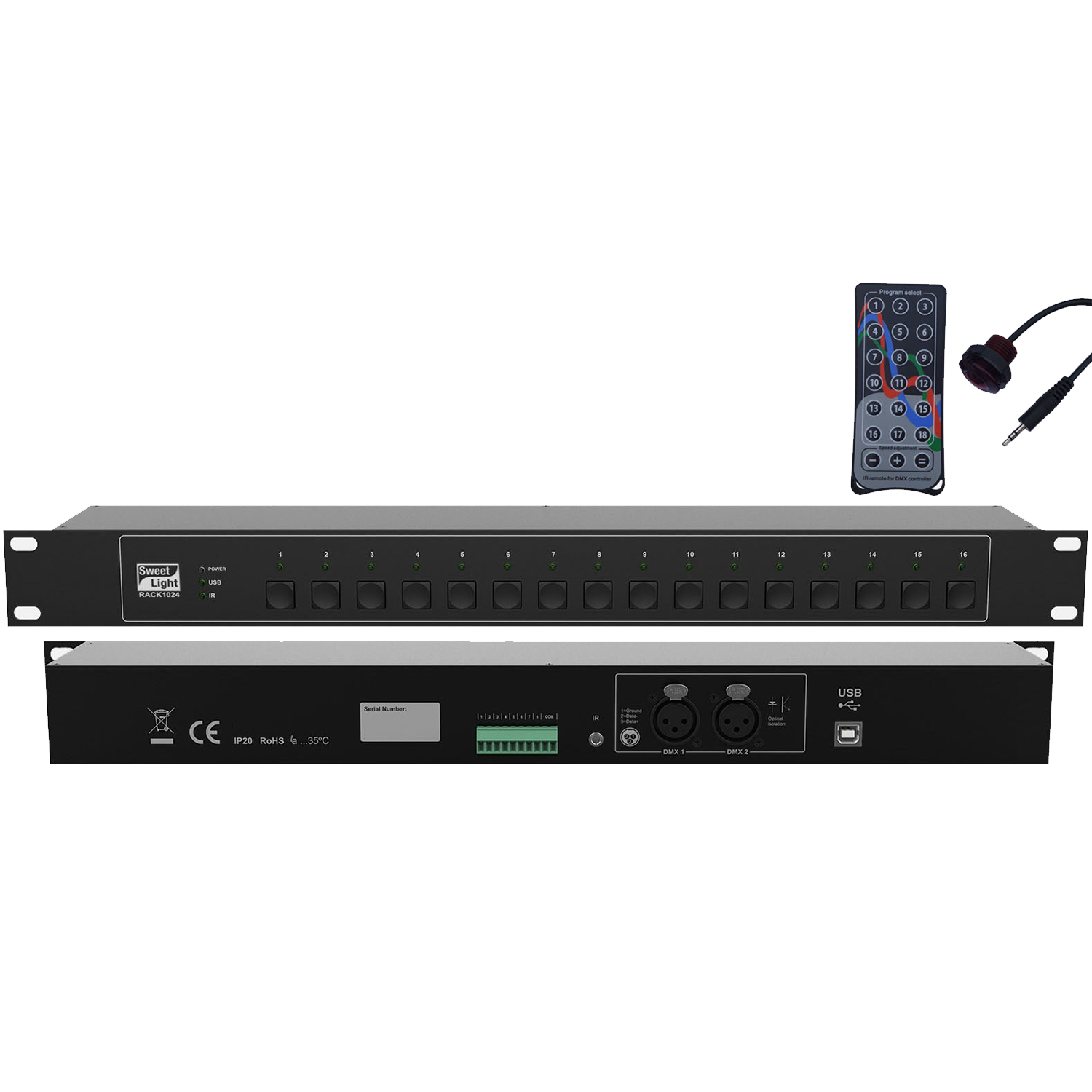 Without using a computer, this interface is able to play up to 16 scenes over 4 different zones, with high-res (16 bits) channels management. These scenes can be triggered by: