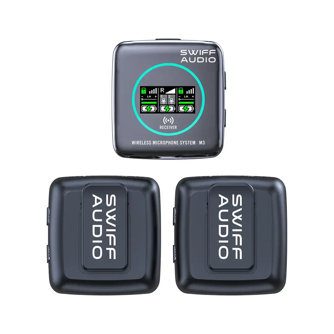 The Swiff Audio M3 PRO Microphone Wireless System is a compact and professional-grade dual-channel wireless microphone kit, designed for content creators, musicians, educators, and presenters. It features two lightweight transmitters with built-in microphones and one compact receiver, allowing for high-quality dual audio capture with real-time monitoring and minimal setup.