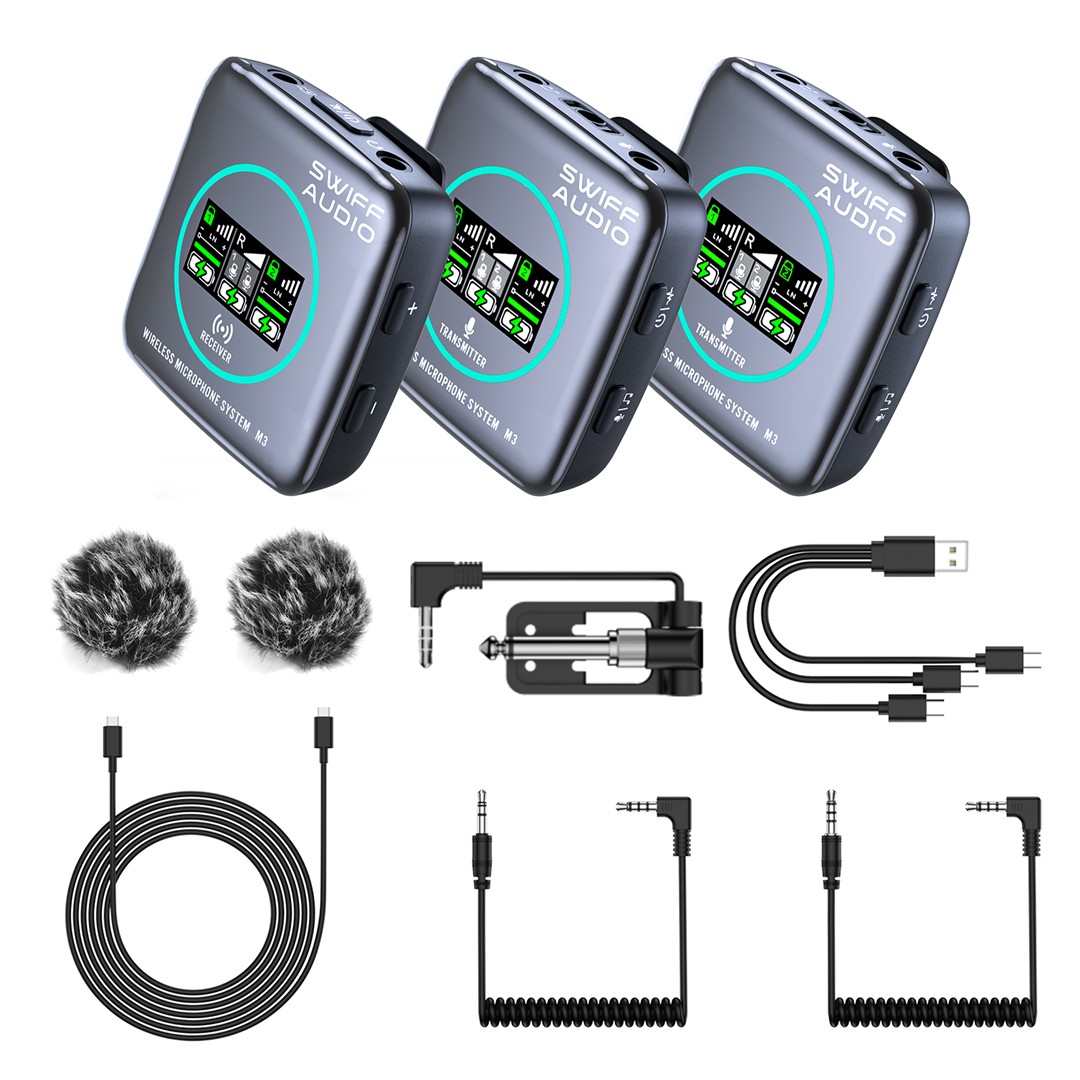 The SWIFF Audio M3-PRO Wireless Microphone System delivers reliable, high-quality wireless audio with dual transmitters, strong signal transmission, and intelligent noise reduction. It ensures clear sound, easy operation, and seamless performance—making it perfect for content creators, musicians, and professional users alike.