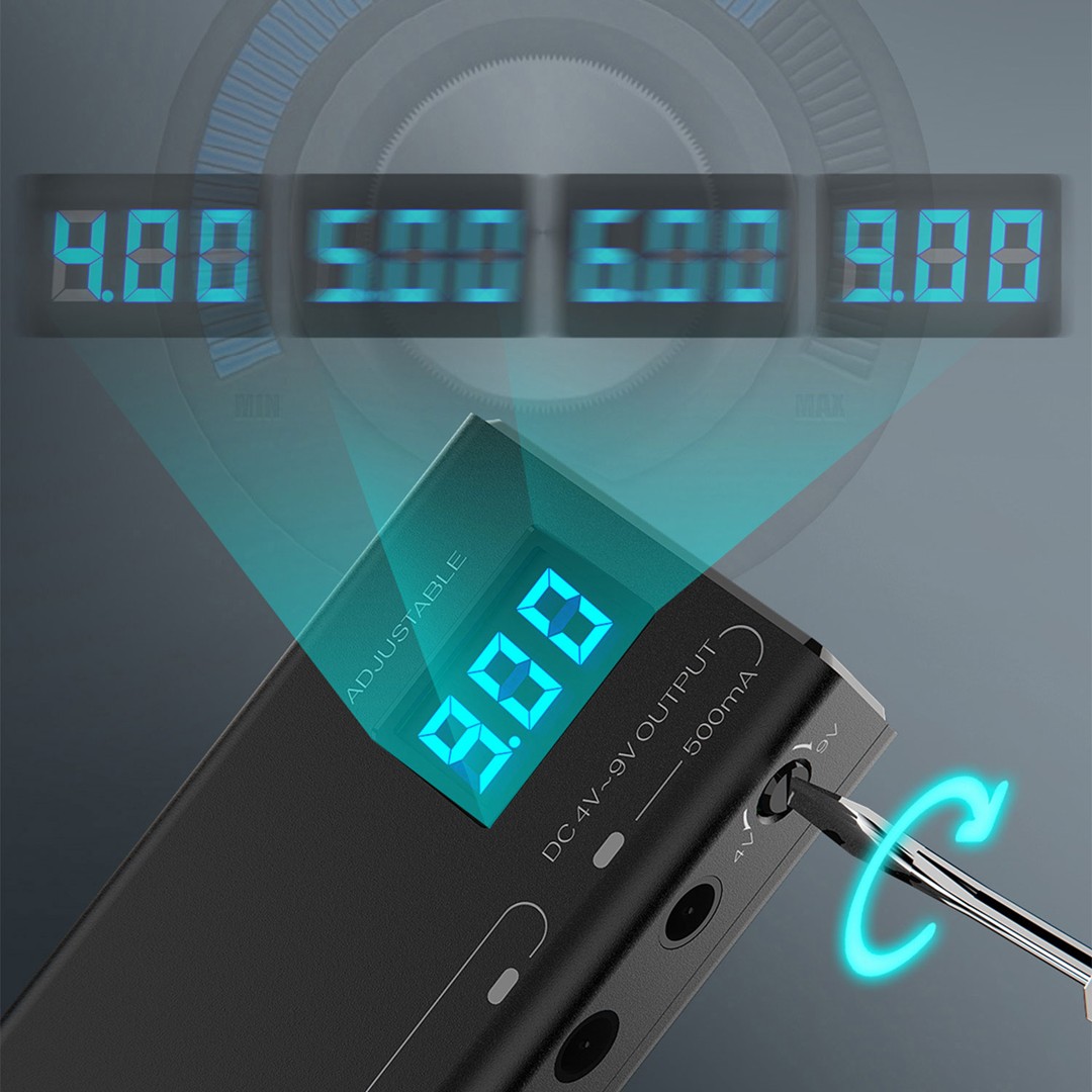 Constructed with a compact and durable design, the P200 utilizes aircraft-grade aluminum housing, ensuring efficient heat dissipation and portability. Each output is equipped with separate short-circuit and overcurrent protection, enhancing the safety and reliability of your pedalboard setup. The real-time voltage display on the adjustable output offers clear monitoring, allowing for quick adjustments during performances or recording sessions.