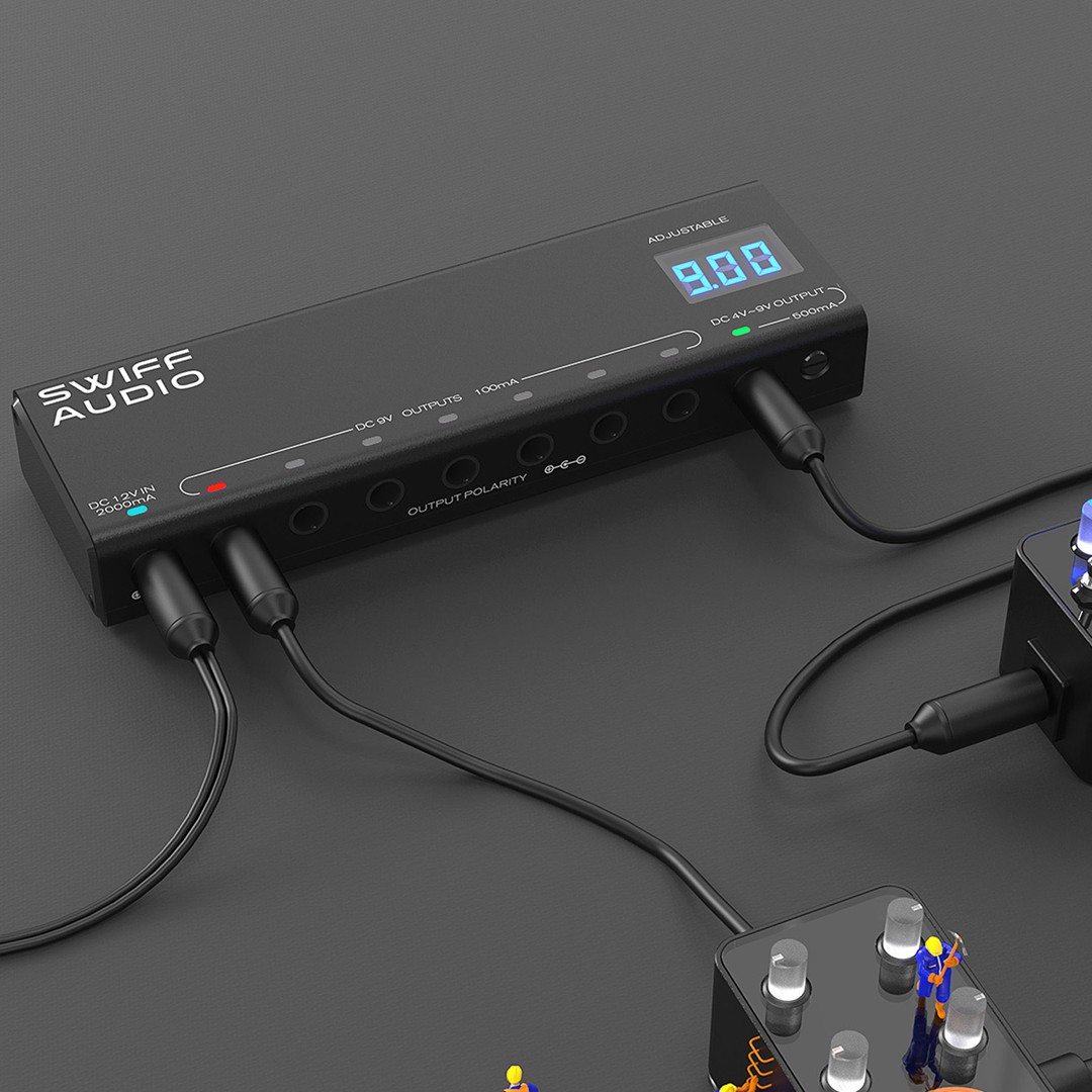 The SWIFF Audio P200 Isolated Adjustable Power Supply offers precision, safety, and convenience in a compact unit. With multiple isolated outputs, adjustable voltage control, and a USB charging port, it supports a wide range of pedal setups. Its rugged design and advanced protection features ensure reliable performance, making it an essential power solution for musicians in any environment.