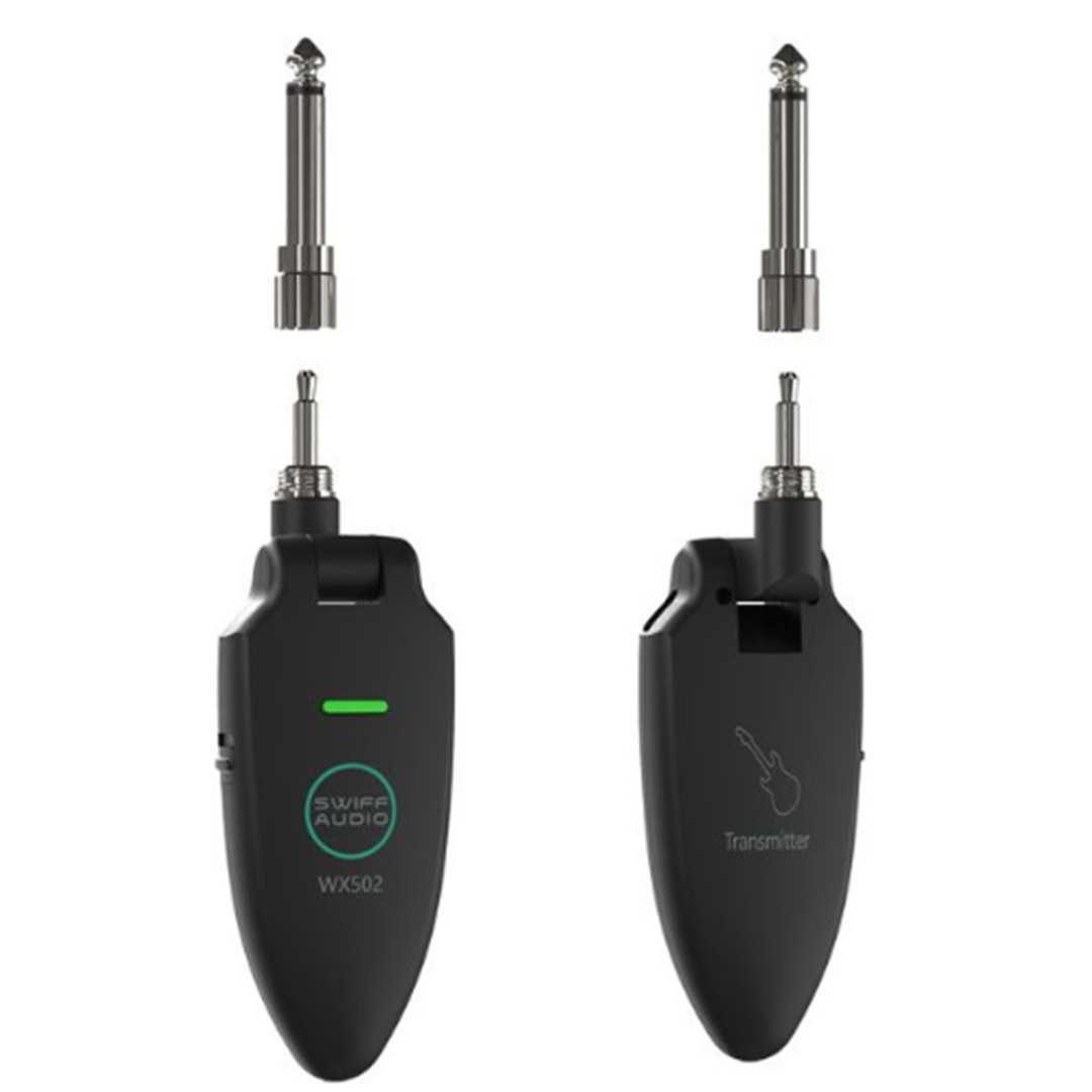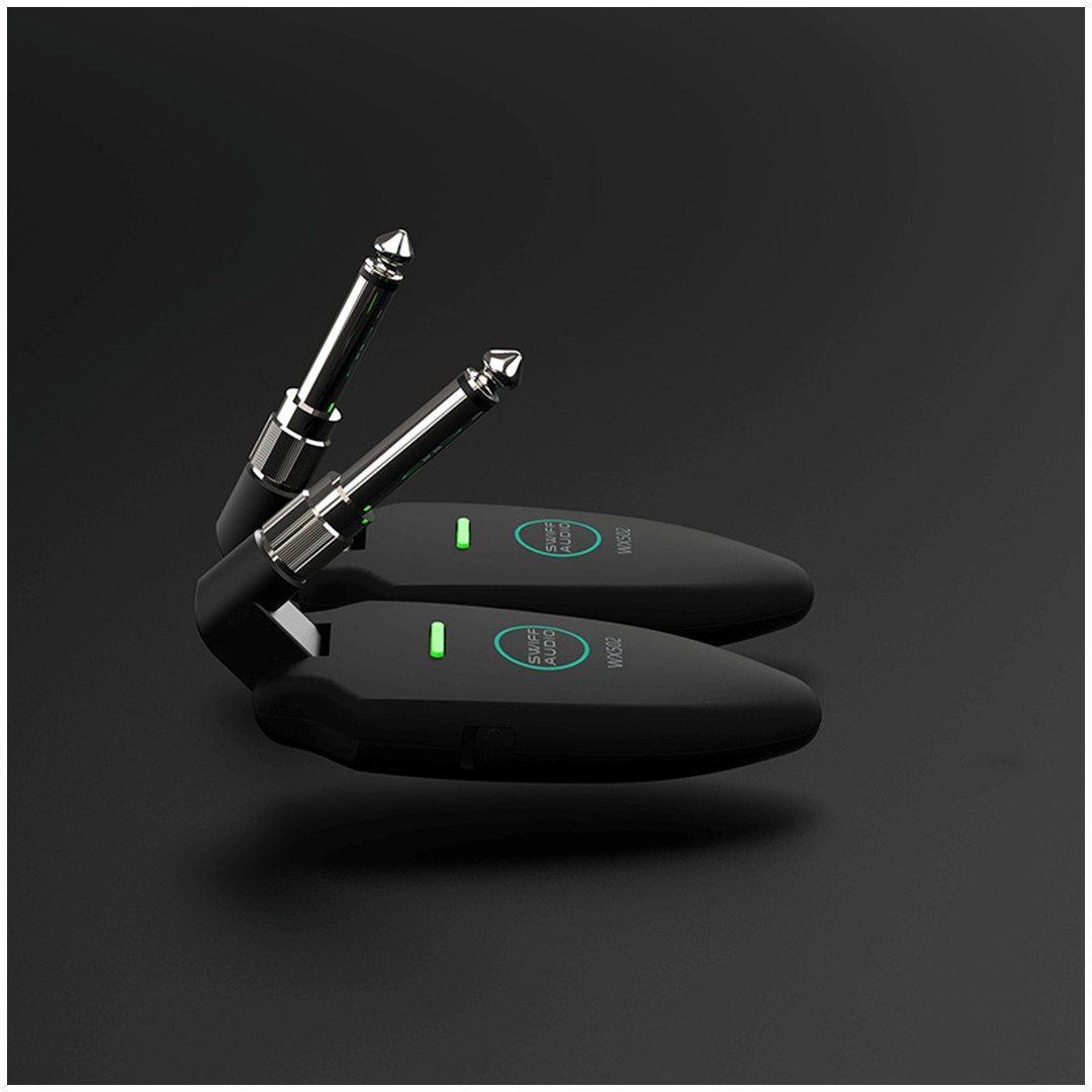 The SWIFF Audio WX-502 Digital Wireless System gives musicians a reliable way to transmit audio without cables. It connects easily to instruments using standard 6.35mm and 3.5mm jacks. This makes it compatible with a wide range of gear.