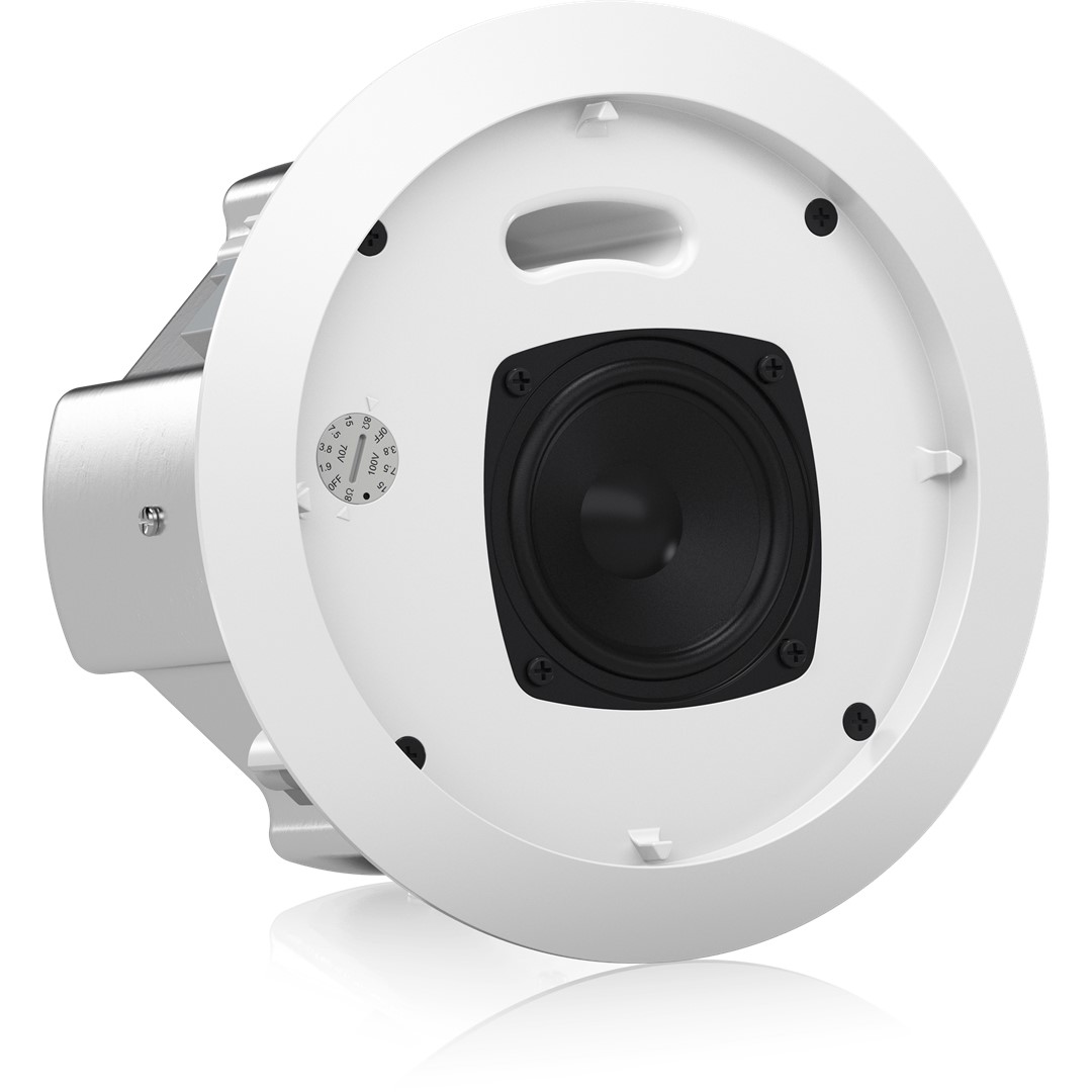 The CVS 301 also includes multiple transformer taps, making it compatible with 70V and 100V line systems, as well as an 8-Ohm direct input. Installation is made easy with the included C-ring and ceiling tile rails, while the steel cover and strain relief mechanism allow for secure fire-rated cable use. The speaker’s semi-matte white finish helps it blend discreetly into any environment.
