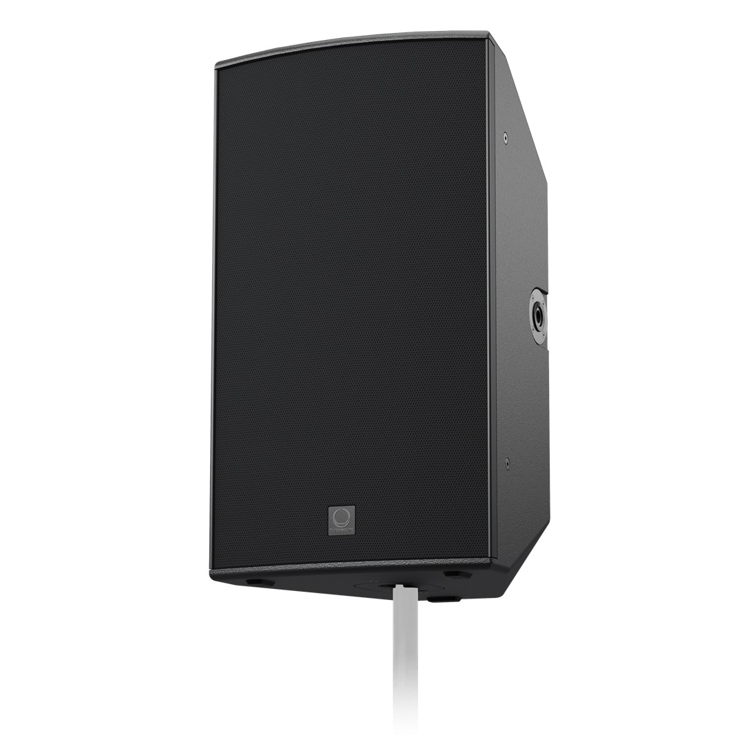 Finished in a highly durable semi matt black paint, the cabinet is constructed from 15 mm (5/8″) plywood – and includes a rugged powder coated cloth wrapped perforated steel mesh grille. Multiple threaded rigging points are provided for suspension in any orientation, or for mounting. Optional flying yoke, swivel brackets, (each available separately). The TQ also features a dual 35 mm socket for standard pole mounting – plus integrated handle for convenient transport.