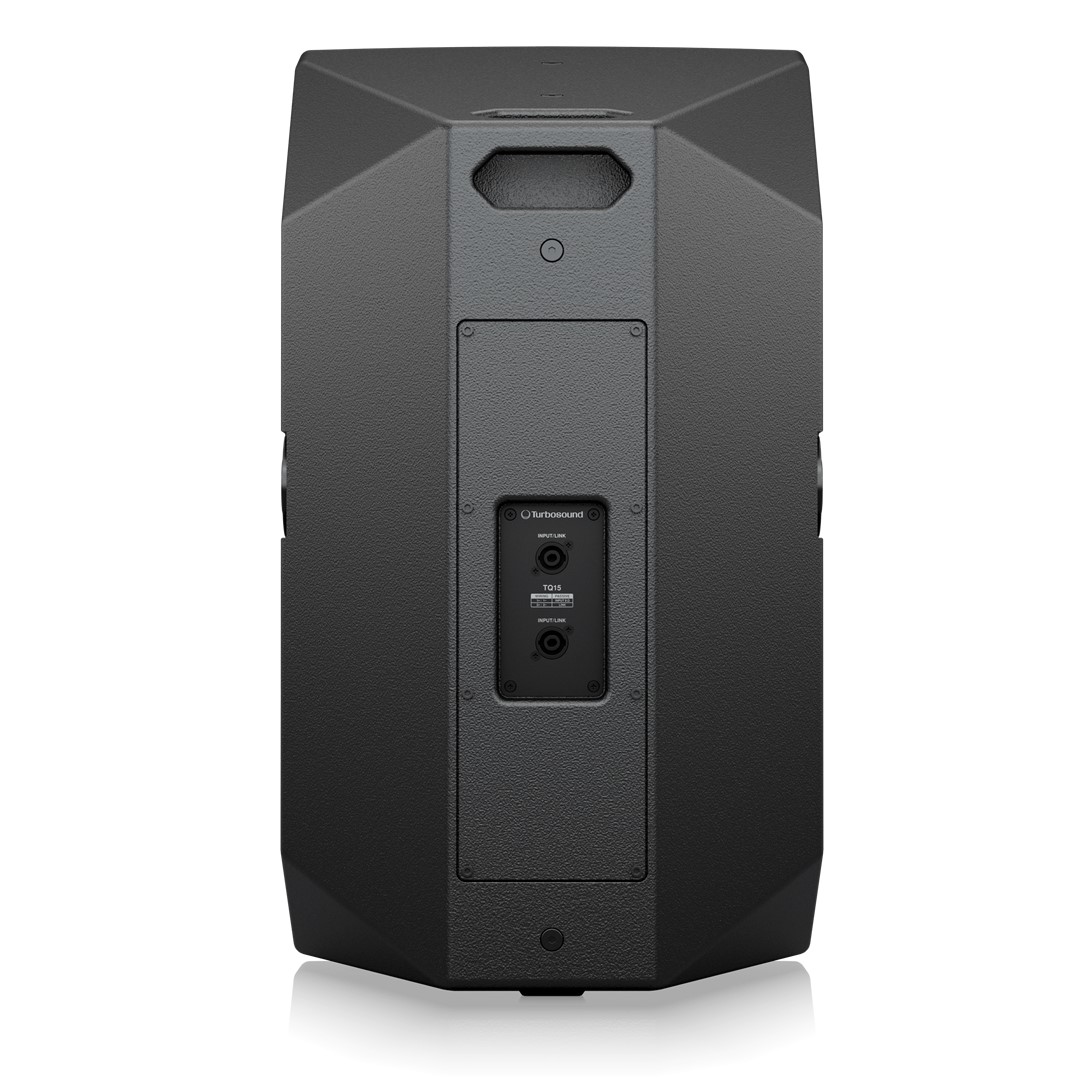 The TQ15 loudspeaker features an 15″ neodymium low frequency driver with a low mass voice coil for improved transient response, and a titanium dome 1.4″ neodymium high frequency compression driver mounted onto an 80° horizontal by 30° vertical rotatable exponential horn paired with a dendritic plane wave transformer (DPWT) waveguide. All drivers are matched with an internal passive crossover network in a reflex-loaded enclosure. The rear panel connector plate carries 2 industry-standard twist-lock speaker connectors for input and link connections to additional enclosures.