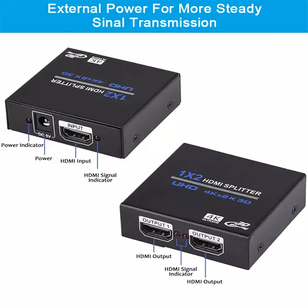 4K HDMI splitter to connect a single HDMI source to multiple displays at the same time.