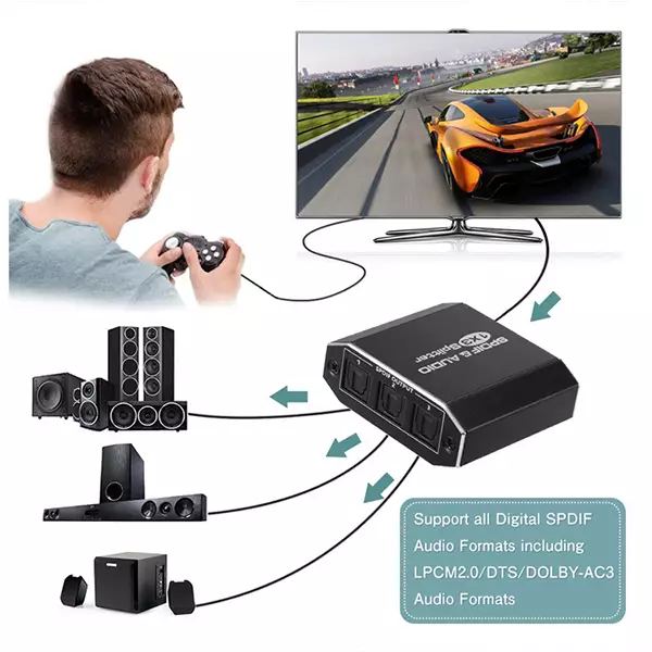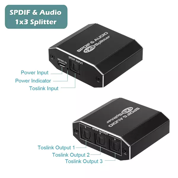 SPDIF Audio Splitter 1×3 Optical Splitter SPDIF Toslink Optical Digital Audio Splitter 1 In 3 Out Support 5.1CH LPCM 2.0 DTS