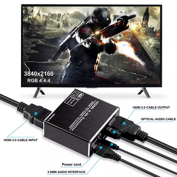 HDMI Audio De-Embedder designed for consumer and commercial applications. High Speed signal transfer means no latency on output . There are 3 Audio output modes available