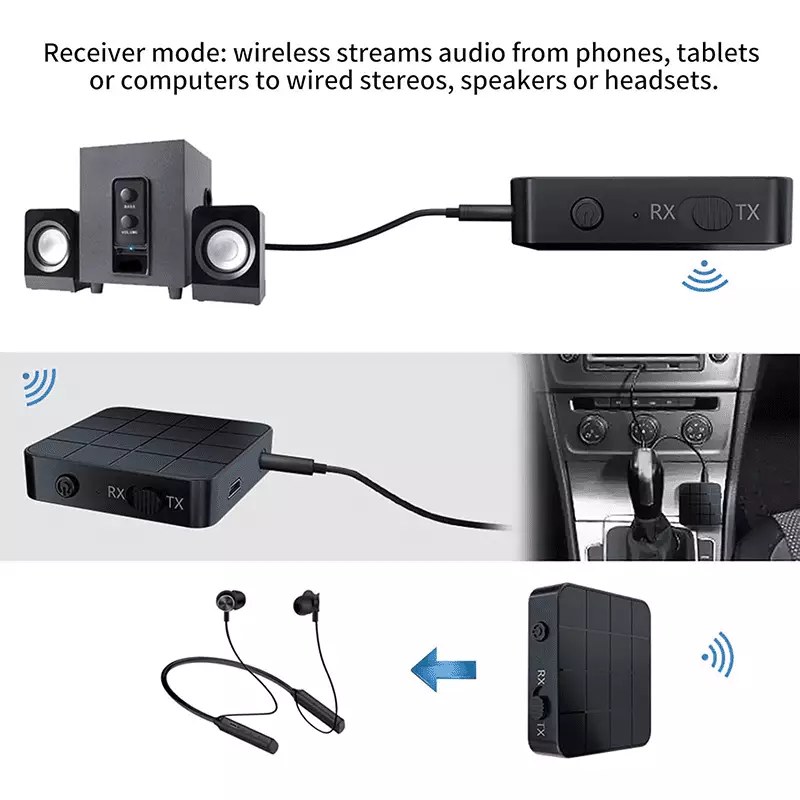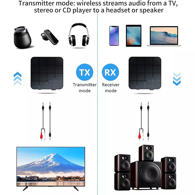 - </span><span class=”a-list-item”>In transmitter mode, audio from a non bluetooth TV, stereo or CD player to a bluetooth headset or speaker, in receiver mode, wireless audio from bluetooth enabled phones, tablets or computers to wired stereos, speakers or headsets