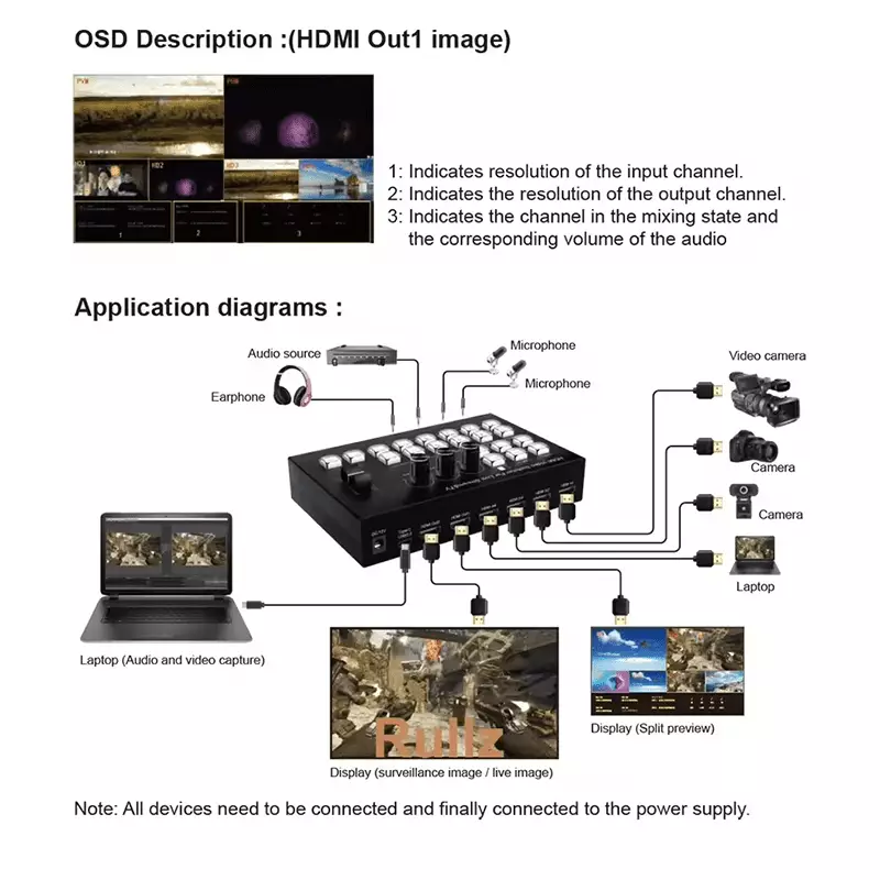 - Support OSD display input channel signal, resolution information, volume information