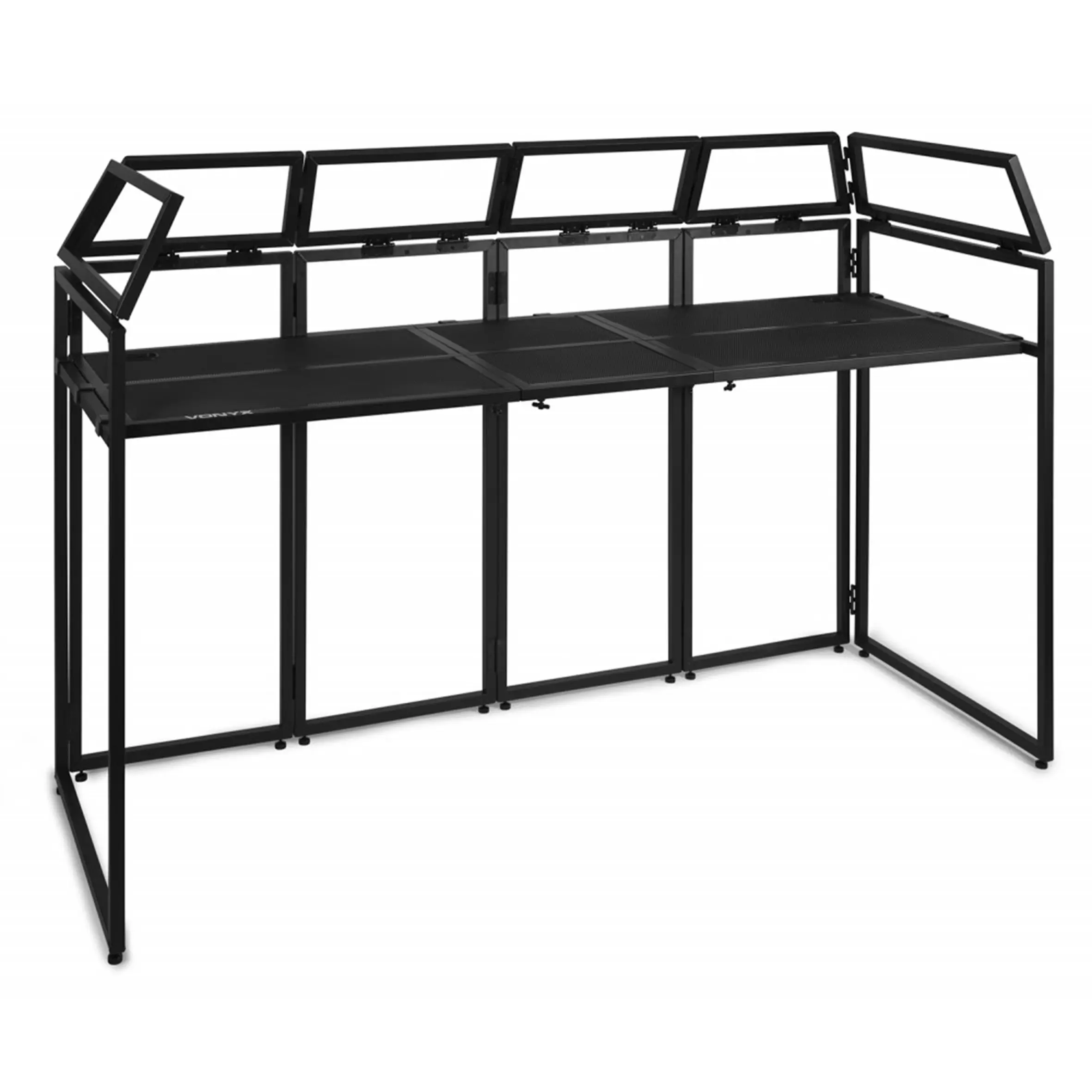 Complete professional large DJ Booth system, including heavy-duty metal DJ-desk and carry-bags for easy transport and storage. Supplied with a white and black lycra cover.