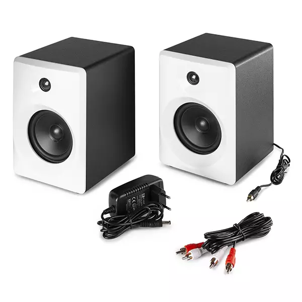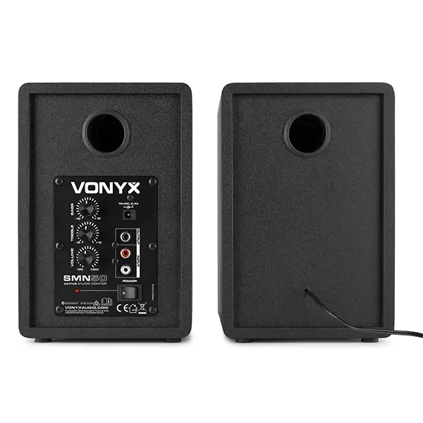 These SM Active Studio Monitors are professional quality studio monitors and also suitable for multimedia use. These speakers are designed to produce a flat frequency response for (home) studio recording, mixing, and mastering duties. Volume, bass and treble controls are located on the back panel for adjustments based on your personal preferences. The SM-series features analog amplifiers that are built into the left speaker, while the right speaker is passive so setup is simple. Just plug the left speaker into AC power and connect the included speaker wire from left to right. These Vonyx SM Active Studio Monitor Speakers creates a new performance level in affordable studio monitors.