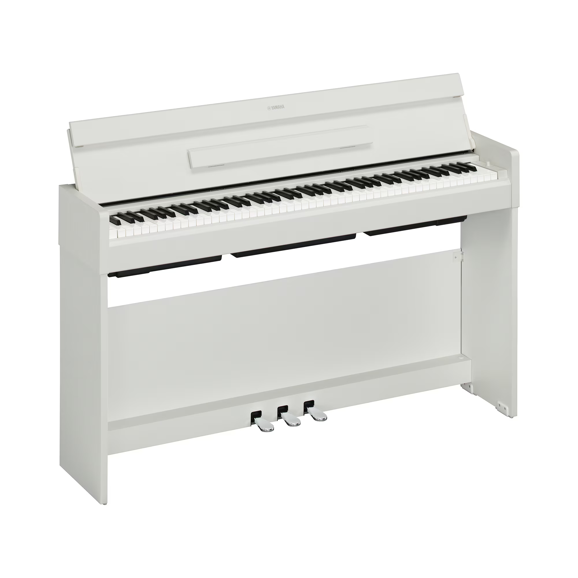 Slim size, 88-key model of the ARIUS digital piano featuring weighted keyboard. With Yamaha’s CFX concert grand piano sound as a built-in Voice, experience a rich expressive playing feel with the GHS keyboard. Includes newly equipped ear-friendly functions, and compatibility with Yamaha’s Smart Pianist app. Lid becomes flat tabletop when closed.
