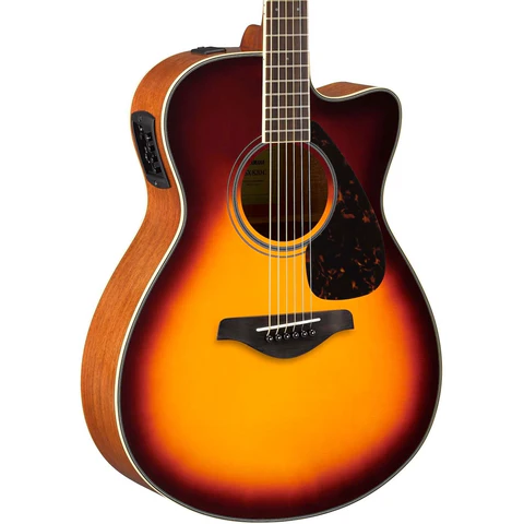 Derived from FS820 which has the solid spruce top and mahogany back/sides, FSX820C has a cutaway body and the electric system. Yamaha’s proprietary under-saddle piezo pickup and System66 analog preamp ensure the solid plugged-in performance. The small and thin body is perfect not only for female/young players but for intermediate to upper level finger-picking style players.