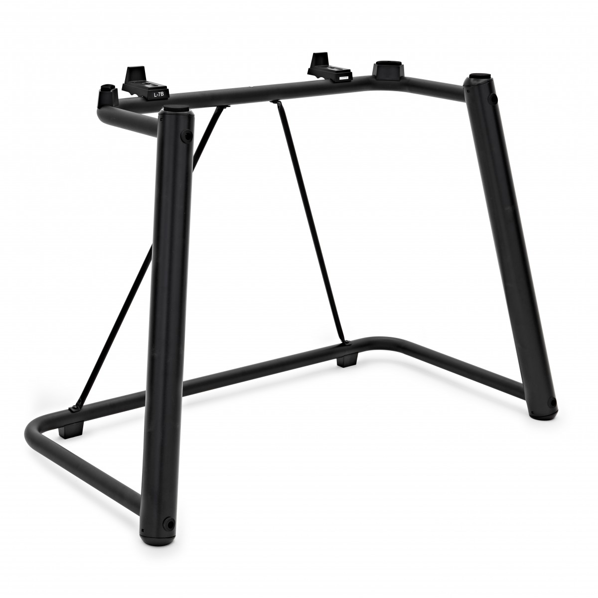 The Yamaha L7B Stand is made for the Genos arranger keyboard. The stand’s sleek, lightweight frame takes up minimal space on stage. The L7B’s arms slot underneath the Genos to sturdily support it, whilst the subtle back plate prevents it from rattling. This model’s compact frame is a portable design, making it easy to take between gigs. Strong legs hold up the keyboard whilst leaving plenty of legroom to play while seated. The keyboard sits securely on the stand, supported by thick foam pads for maximum security and reliability.