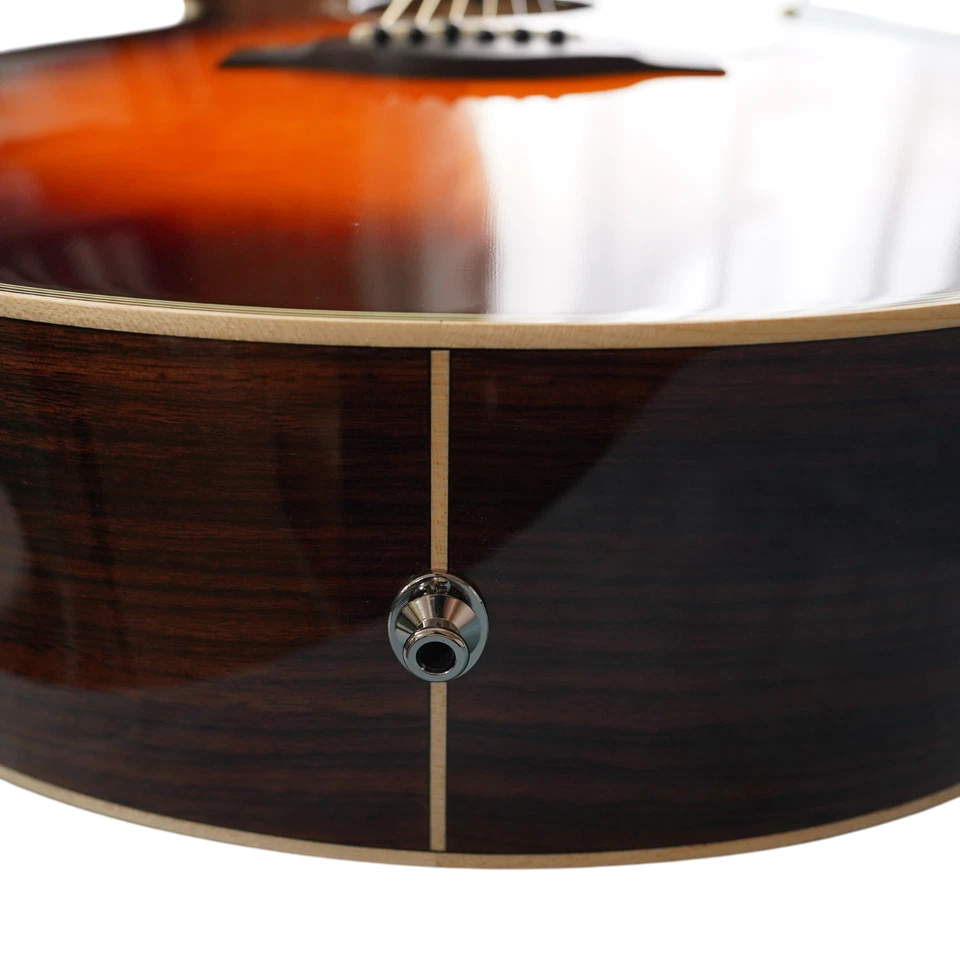 The LJ16-BS//ARE features a solid Spruce top with ARE treatment, solid Rosewood back and sides, Ebony fingerboard, mini jumbo body and comes with a quality soft case. Select ARE pre-aged tonewoods combined with Yamaha’s all-new bracing design creates a warm, rich tone that fits perfectly in a mix or solo. Yamaha’s Zero Impact pickup system provides live players with accurate dynamic response and full bodied tone at the output, without affecting the look of the guitar. Brown Sunburst finish.