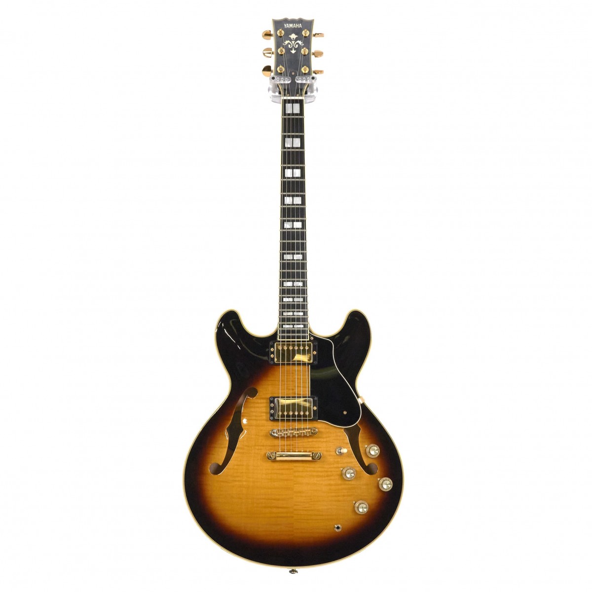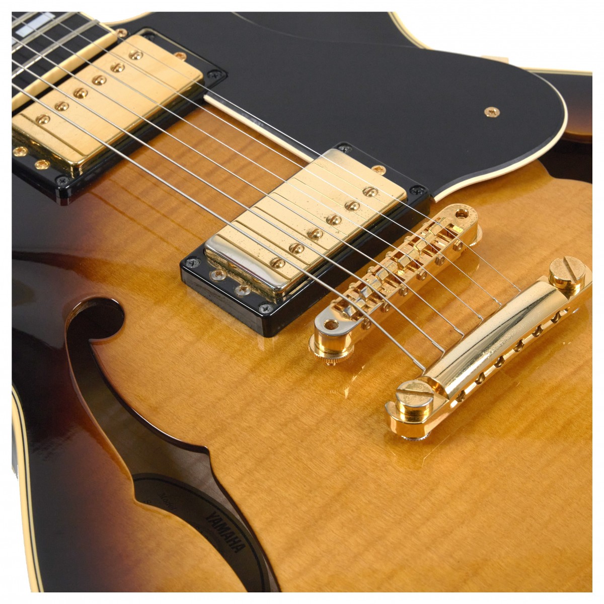 The SA2200’s laminated Maple body features a solid Mahogany centre block to reduce feedback and enhance sustain, complementing the presence and attack of the Maple. The one piece Mahogany neck offers an ultra-comfortable profile while the traditional set-neck construction ensures the ideal balance between clarity and warmth of tone. The SA2200 features Gold hardware, Ebony fretboard and is fitted with a pair of custom-wound Yamaha Alnico V Humbuckers. Dual push/push coil taps allow each pickup to be instantly switched to single coil, offering huge versatility and a massive tonal palette. Brown Sunburst finish.