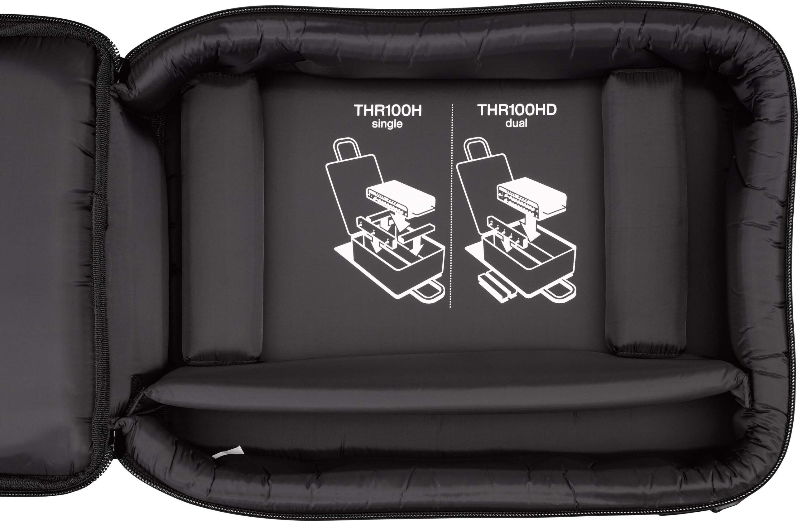 The Yamaha Carrying Bag for THR Head Series Amplifiers is a carry bag designed to allow safe and convenient transport of one Yamaha THR Head Series amplifier such as the THR100H Dual or the THR100H. It features a zipper closure, extra space for your footswitch and cables, and an outer pocket for accessories. The handle and included adjustable shoulder belt enable easy carriage to and from gigs.