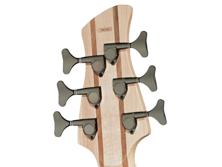 The 5-piece maple neck is designed with a 35-inch (889mm) super long scale and 24-frets. The neck on the TRB1006J is fitted with double truss rods to sufficiently counter tension created by the instruments six strings.