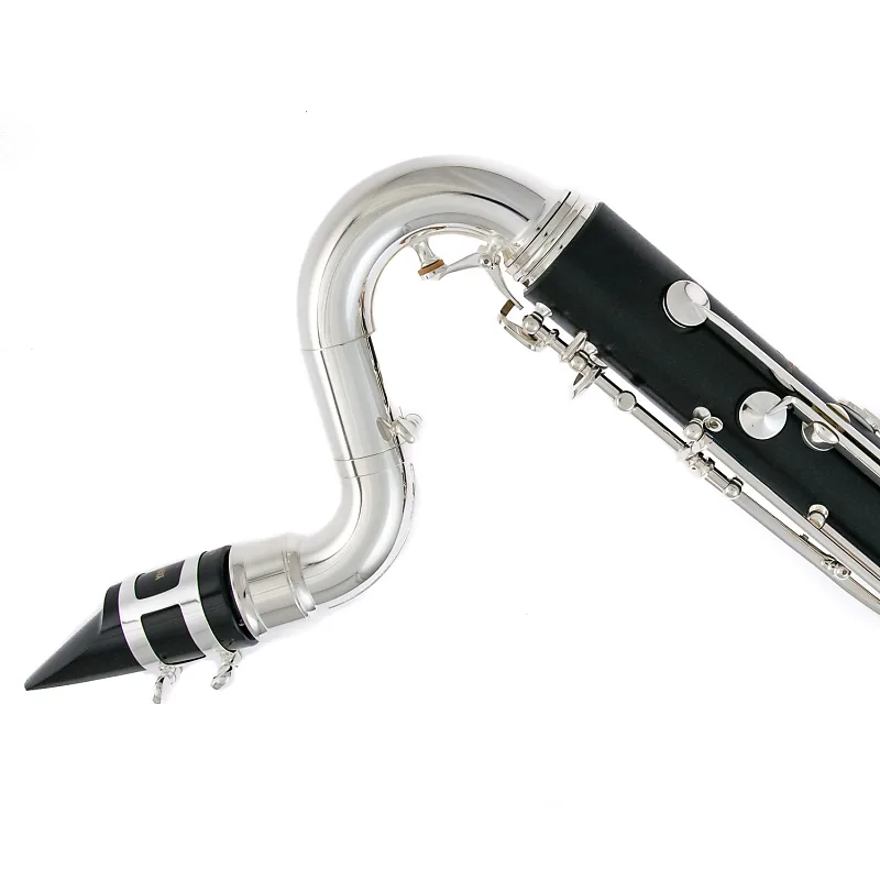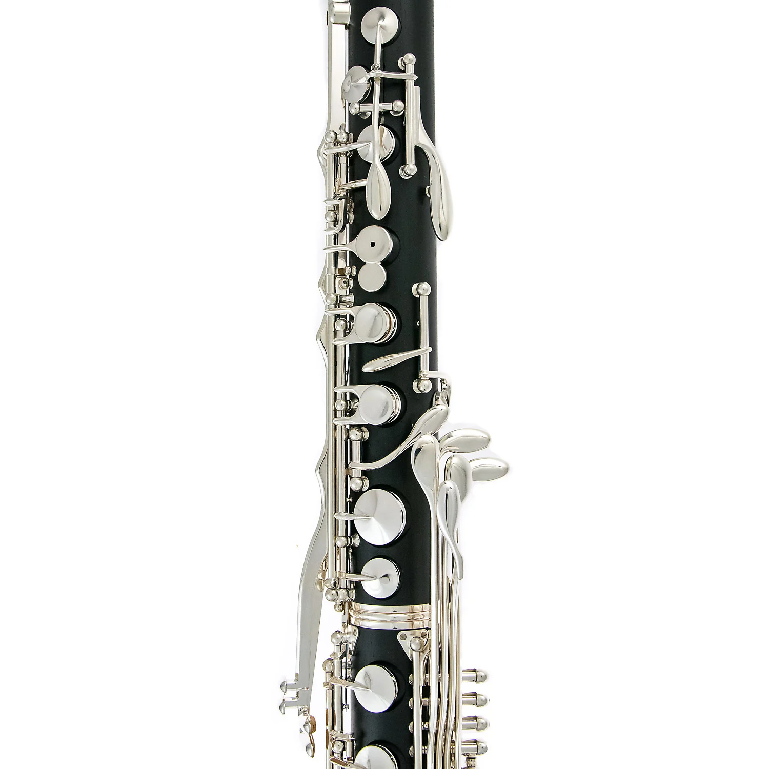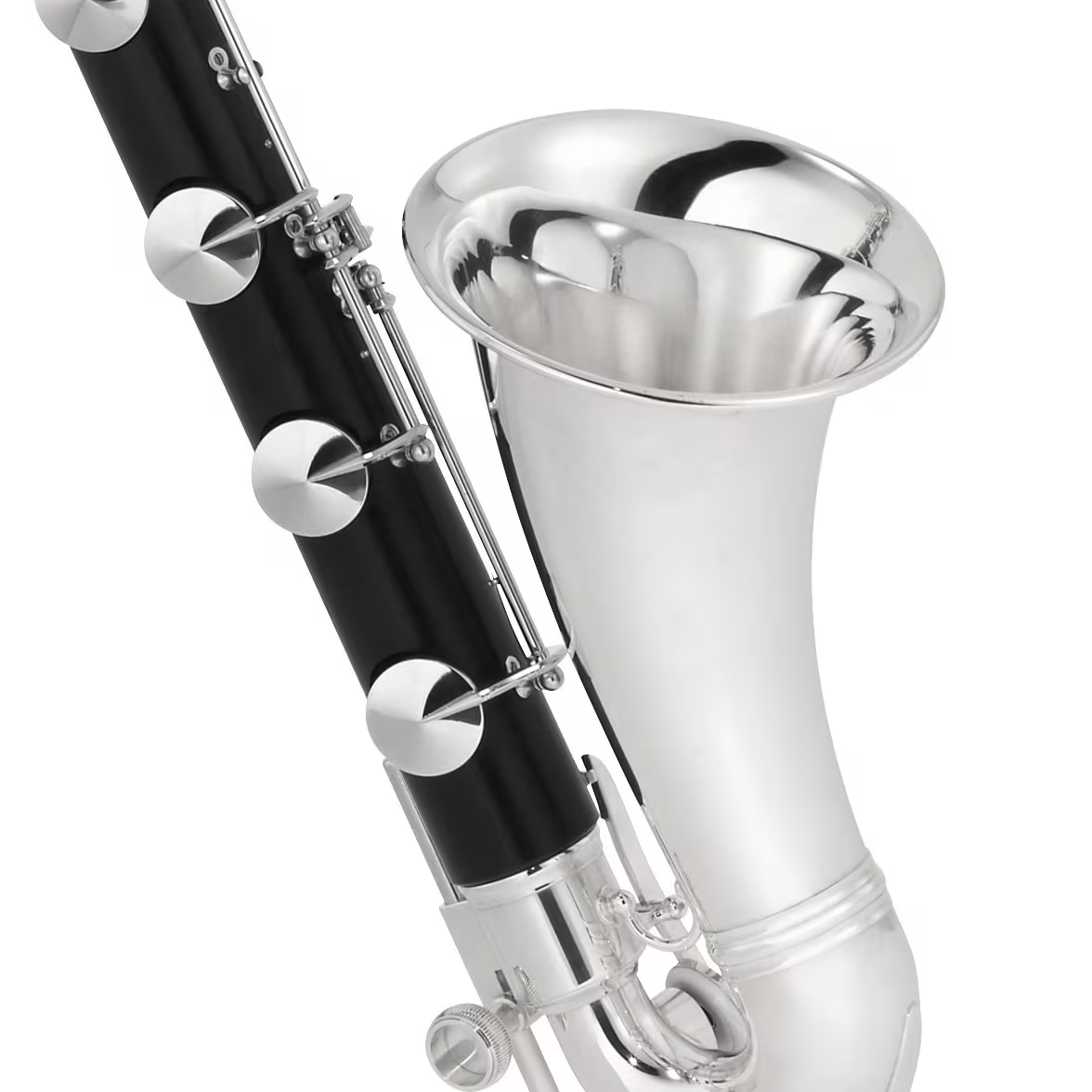 A student-level Bb bass clarinet crafted with a durable matte ABS resin body offering the look, feel, and warm tonal character reminiscent of wooden instruments Silver‑plated nickel‑silver keywork (unlike the YCL‑221II’s nickel-plated keys) wn to low Eb