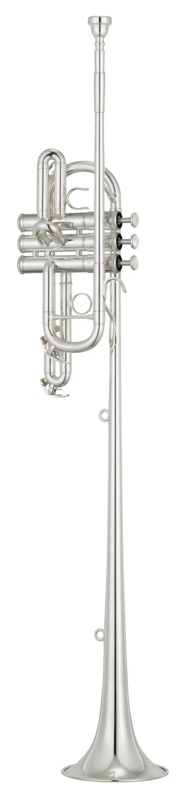 The Yamaha YTR-6330FS is a professional Bb herald trumpet designed for ceremonial and fanfare performances. Its extended bell with integrated flag rings creates a striking visual presence while maintaining Yamaha’s signature precise intonation and rich tone. The silver-plated finish provides a bright, brilliant sound and a polished appearance, ideal for parades, public ceremonies, and ensemble fanfares. Built with a medium-large bore for balanced resistance, it offers smooth playability and excellent projection outdoors or indoors.